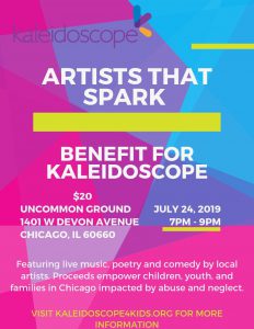 Thank you to everyone who supported Kaleidoscope at Artists That Spark in July! We are grateful for all of the talented performers who shared their passions with us. It was a unique evening filled with laughter, entertainment and inspiration! Hats off to Kaleidoscope’s Associate Board for hosting such an extraordinary event!